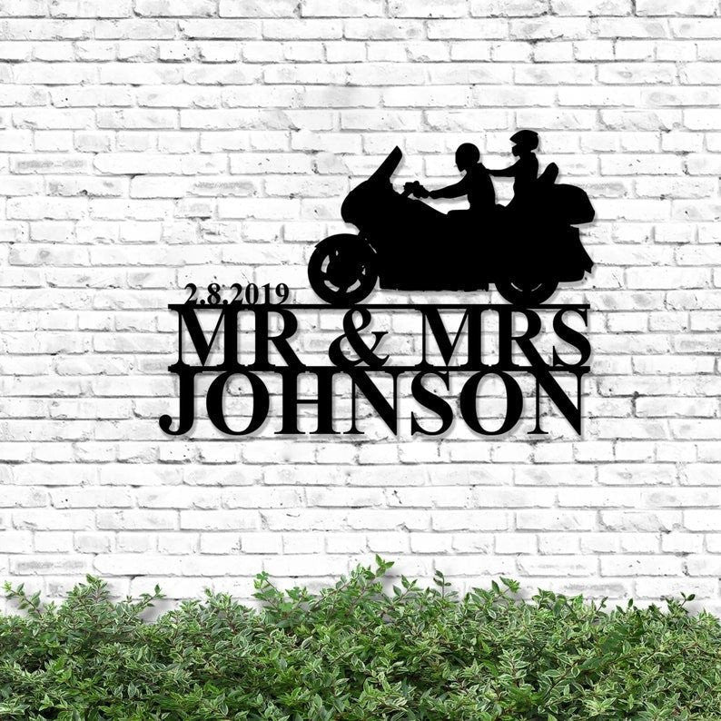 Custom Biker Couple Personalized Metal Sign Biker Metal Sign Outdoor Decor Motorcycle Sign Gift For Couple Gift For Husband Decorations