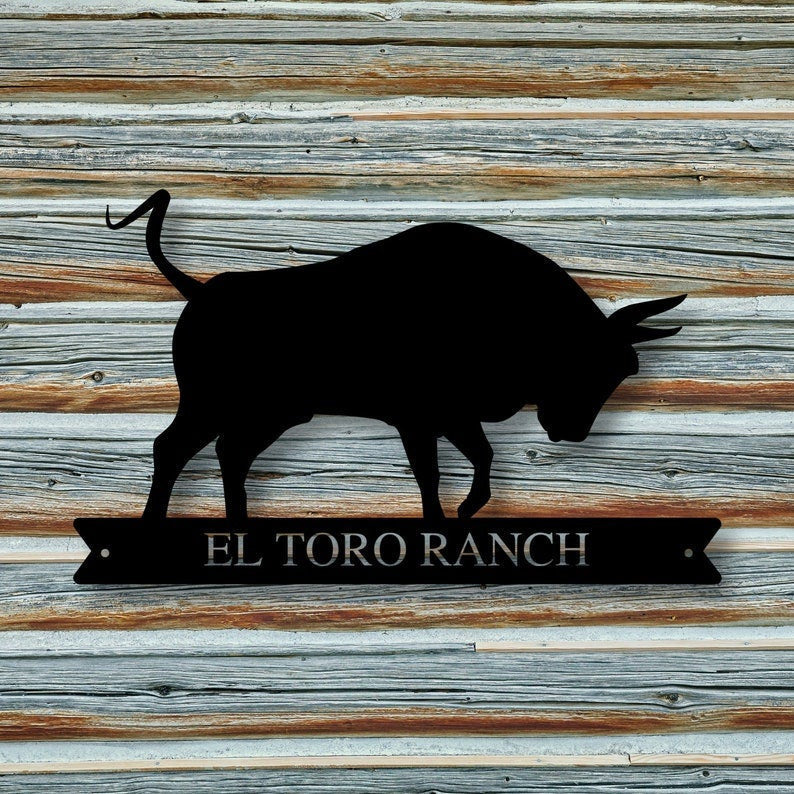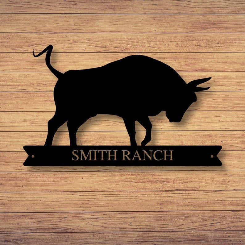 Custom Family Name Bull Sign Metal Bull Sign Farmhouse Decor Outdoor Family Sign Outdoor Decor Metal Sign Bull Ranch Sign Decorations