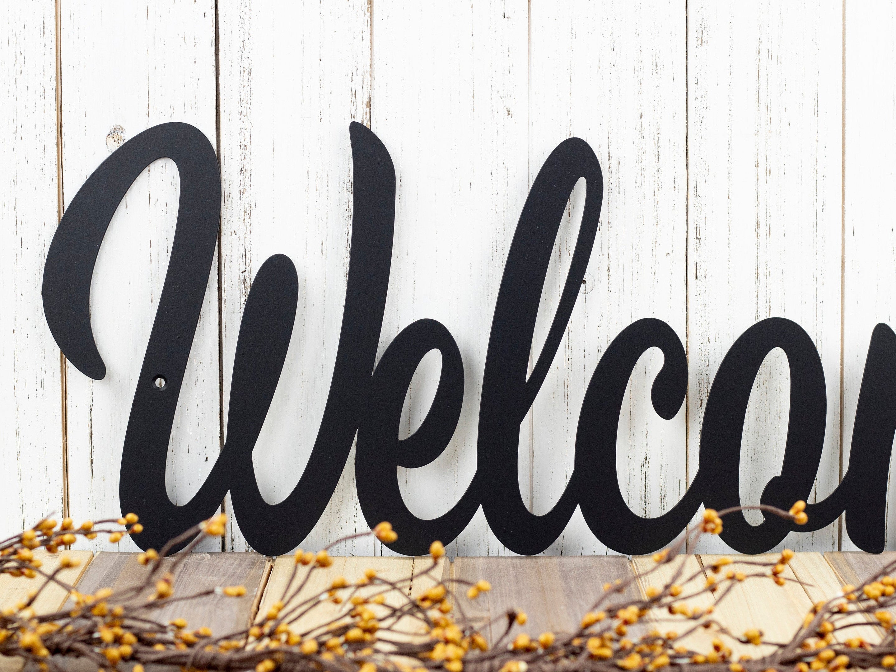 Metal Welcome Sign Farmhouse Decor Outdoor Welcome Sign For Front Porch Lake House Decor Matte Black Show Decorations
