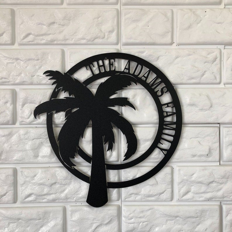 Personalized Palm Tree Metal Sign Beach House Signs Door Hanger Beach Decor Coastal Decor Tropical Decor Decorations