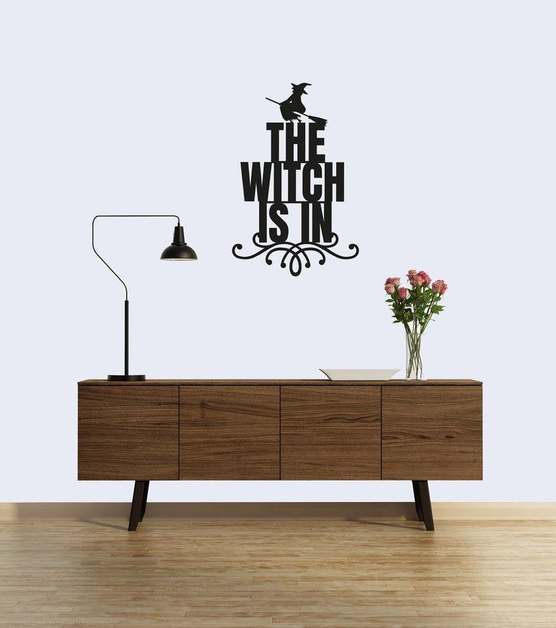 The Witch Is In Metal Sign Halloween Themed Laser Cut Solid Steel Decorative Home Accent Wall Sign Indoor Or Outdoor Decorations